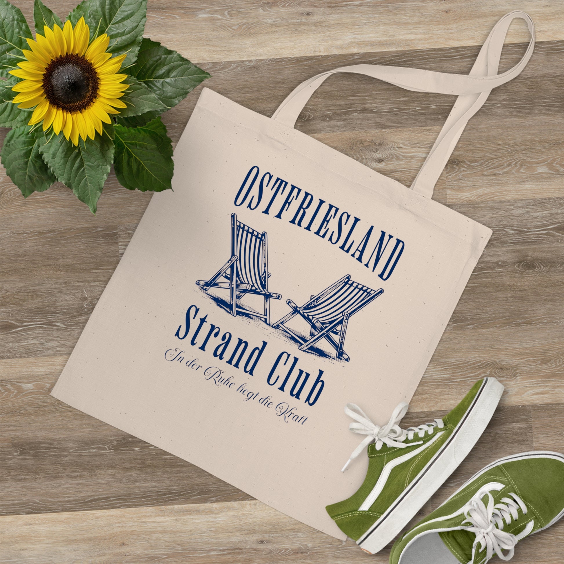 Ein maritimes Design für echte Nordsee-Fans: Diese Natural-Baumwolltasche zeigt zwei klassische Strandliegen und bringt sofort Urlaubsstimmung in deinen Alltag. Perfekt zum Shoppen, am Strand oder als stylisches Accessoire mit Heimatgefühl.